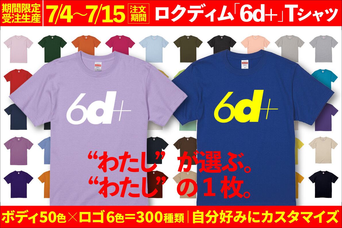 【期間限定:7/4〜7/15迄】の【受注生産】で大好評のロクディムの定番Tシャツ「6d+Tシャツ」を受注生産で発売します!